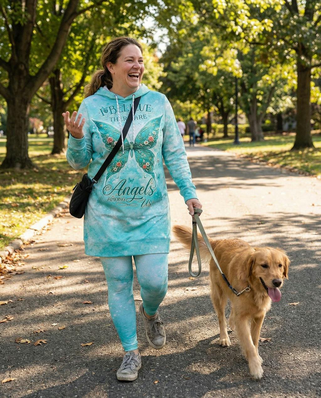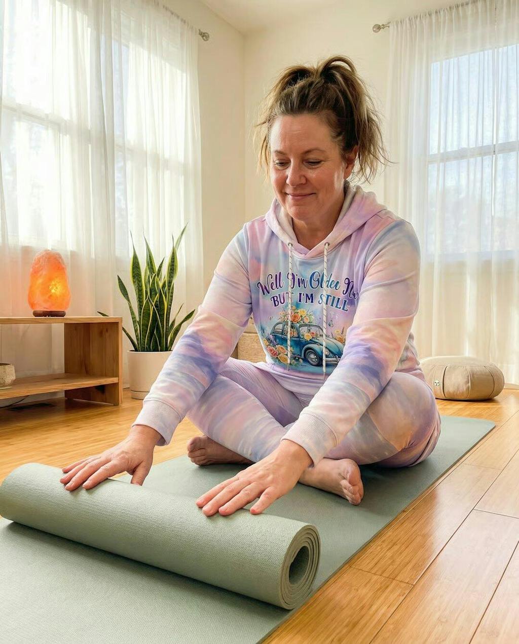 The tie-dye is beautiful—soft greens and creams that feel earthy and calming. The fabric is substantial (read: not cheap) and the print quality is excellent. I was worried about washing but it's held up perfectly.