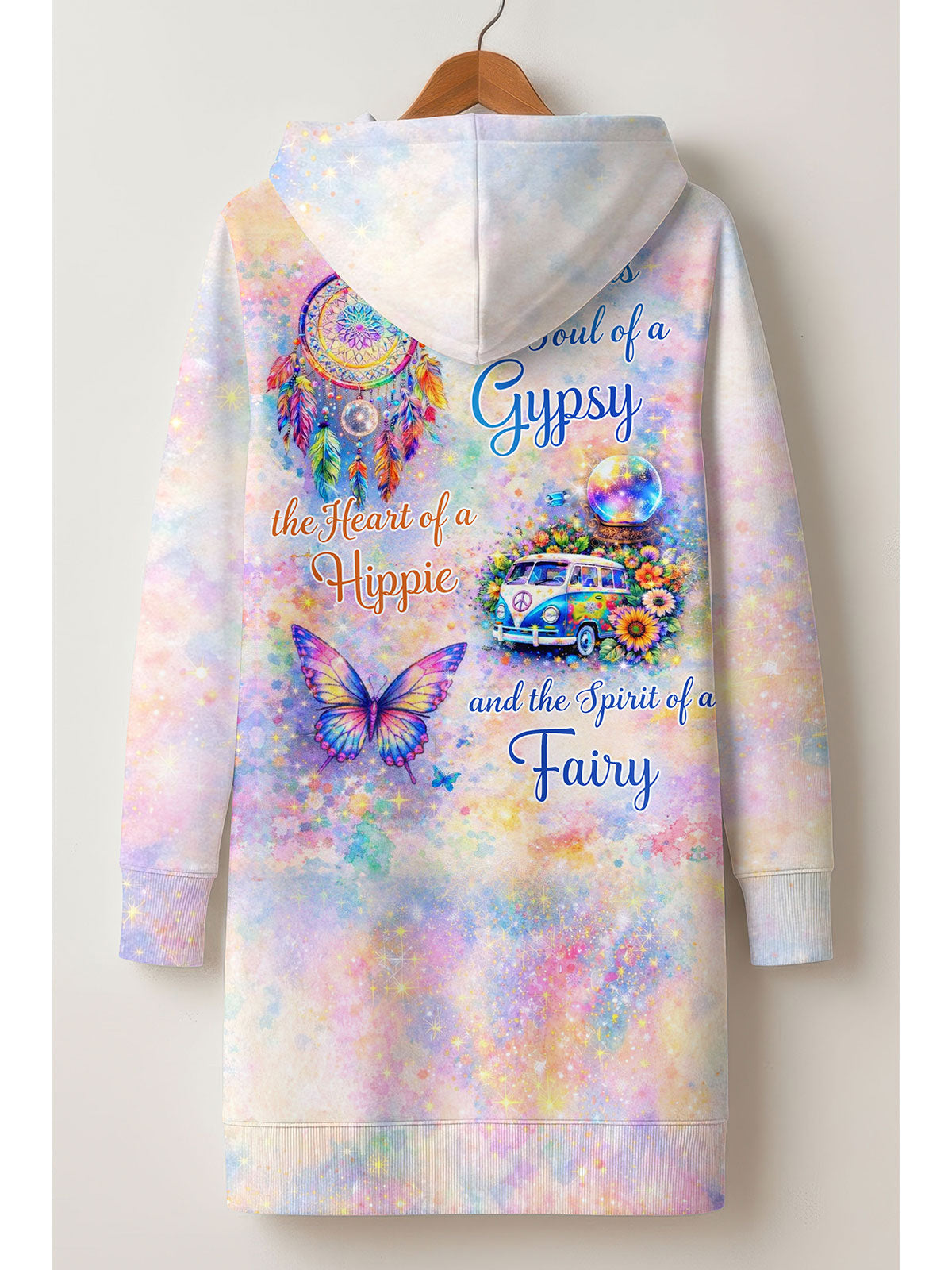 "WHIMSY" is more than a hoodie dress it's a wearable embrace of the magic you've always carried within. Designed for free-spirited women who never lost their sense of wonder and still believe in things unseen, its enchanting artwork whispers what the world tries to make you forget: you are mystical, luminous, playful, and touched by something ancient and divine. Slip into "WHIMSY" as a daily invitation to honor your whimsy and let your inner child lead because the ones who still believe in magic are the ones who find it everywhere.